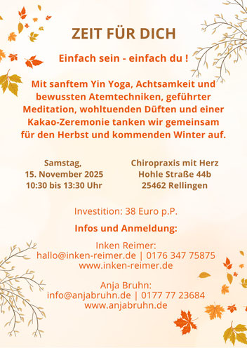 Die Teilnahme ist kostenfrei. Bitte melde dich verbindlich bei mir an.